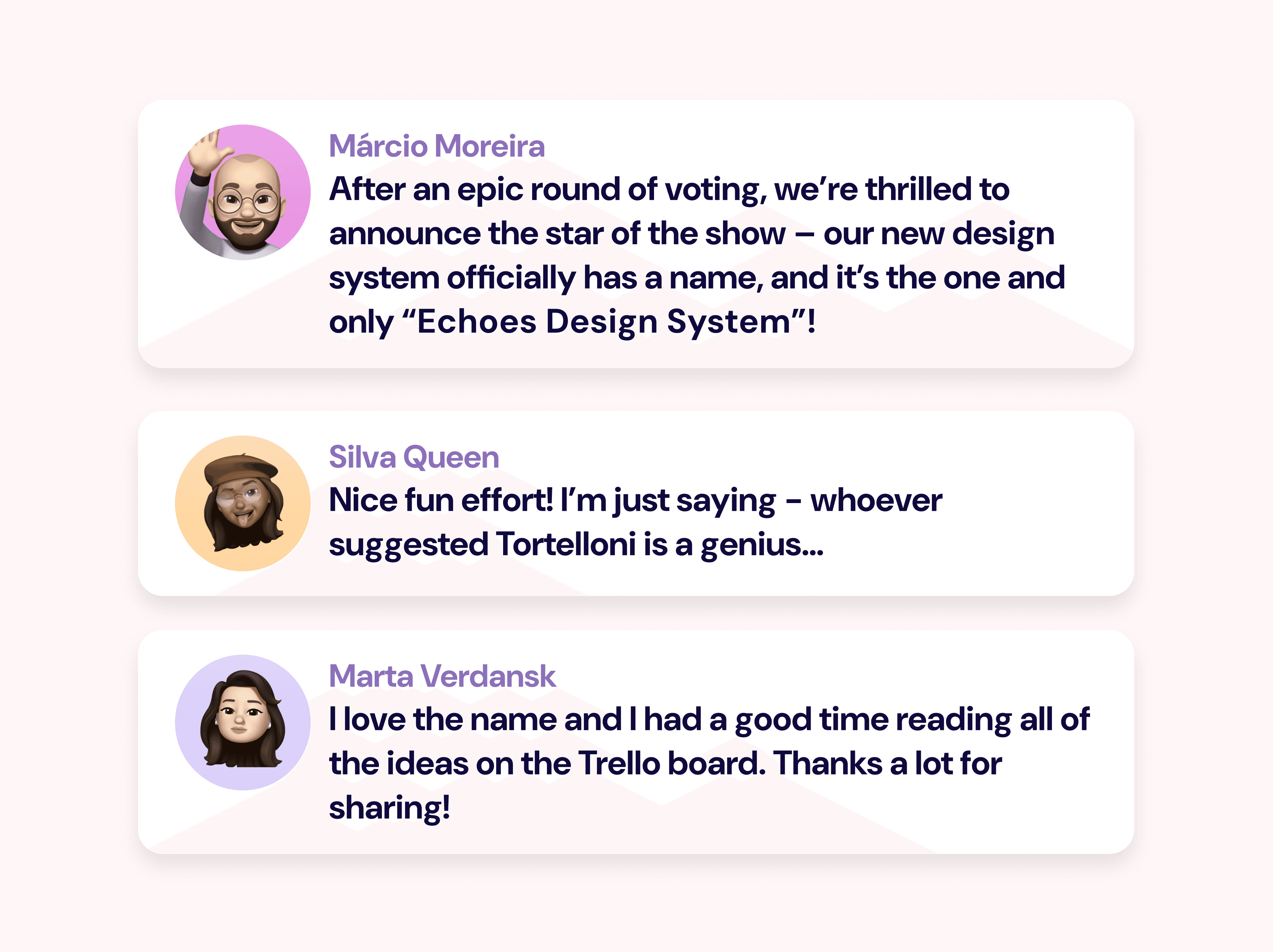 To bring awareness and engagement early on, we decided to ask to our colleagues and future community to propose ideas for the design system name.